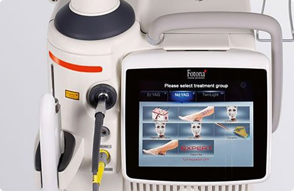 レーザー治療Fotona社製レーザー機器を用いた治療を行っています。尿失禁やいびき・睡眠時無呼吸症候群(SAS)のほか、肌のハリやたるみ改善、ニキビ痕治療などにも対応可能です。痛みやダウンタイムを抑えた施術で、身体の機能改善から美容面まで幅広くサポートします。