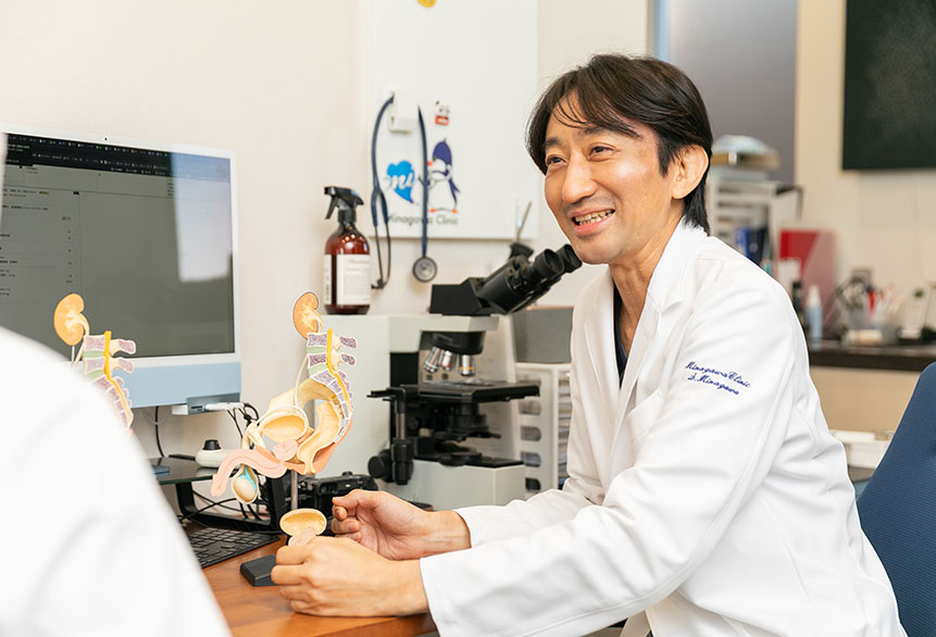 男性・女性・お子様それぞれに合わせた泌尿器科診療を行っております。頻尿や尿漏れなどの日常的な排尿トラブルから、前立腺や膀胱の疾患、夜尿症(おねしょ)や男の子の性器の悩みまで、年齢や性別を問わず幅広く対応いたします。小さなお子様からご高齢の方まで、安心して相談できる泌尿器科として、地域の皆さまの健康をサポートしてまいります。