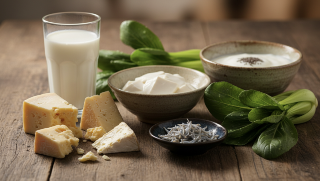 牛乳やヨーグルトなどの乳製品は優れたカルシウム源です。普通牛乳はコップ1日1杯が目安ですが、ローファット牛乳は脂質が少なくカルシウムが多いため、コップ2杯でも問題ありません。ヨーグルトは100〜150gが目安で、加糖タイプの場合は糖分が多くなるので摂取量に注意しましょう。