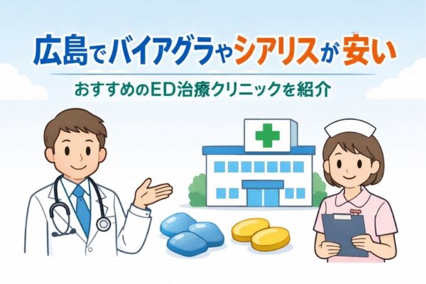 ED治療をどこで受ければいいのか分からない、と悩んでいませんか? 広島駅や八丁堀駅の近くで通いやすいED治療クリニックを知りたい、と感じている人もいるのではないでしょうか。 治療費がいくらかかるのか不安で一歩踏み出せない、という人もいますよね... -