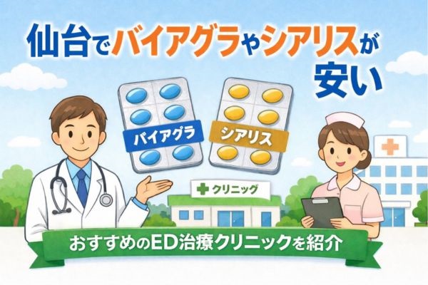 「最近勃起が続かない」 「パートナーに申し訳ない」 「どこでED治療を受ければいいのか分からない」 と仙台でお悩みではありませんか。 仙台駅・あおば通駅・広瀬通駅周辺には、泌尿器科や男性専門クリニックでED治療薬(バイアグラ・シアリス・ジェネリ... -