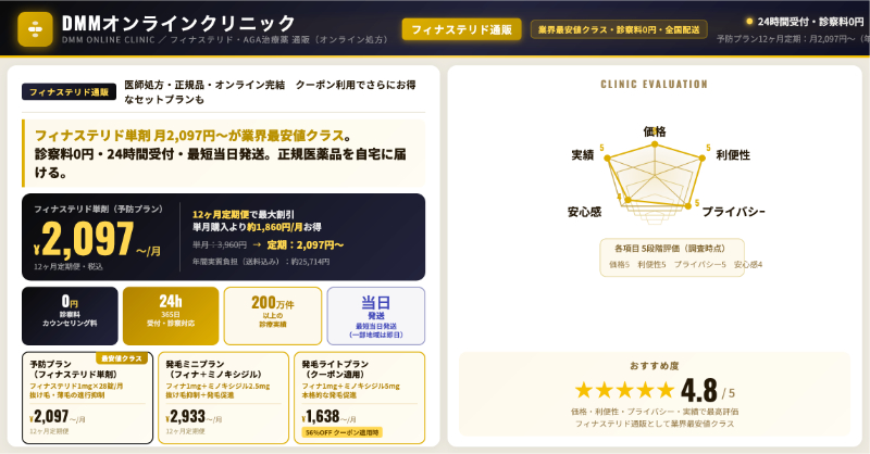 DMMオンラインクリニック|24時間オンラインで続けやすい、フィナステリド中心のAGA治療プラットフォーム