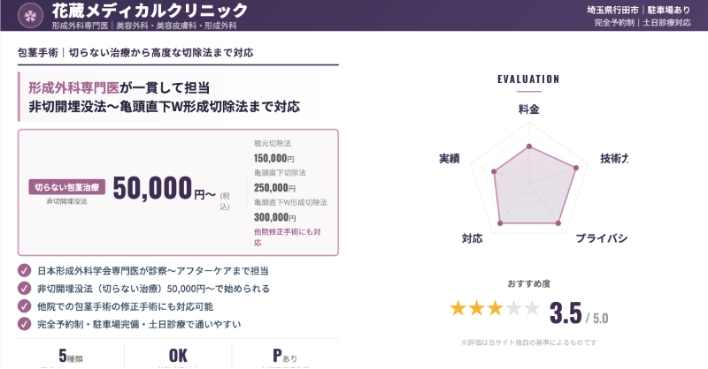 | 花蔵メディカルクリニック | 男性器の包茎治療・増大術を含む美容外科 |