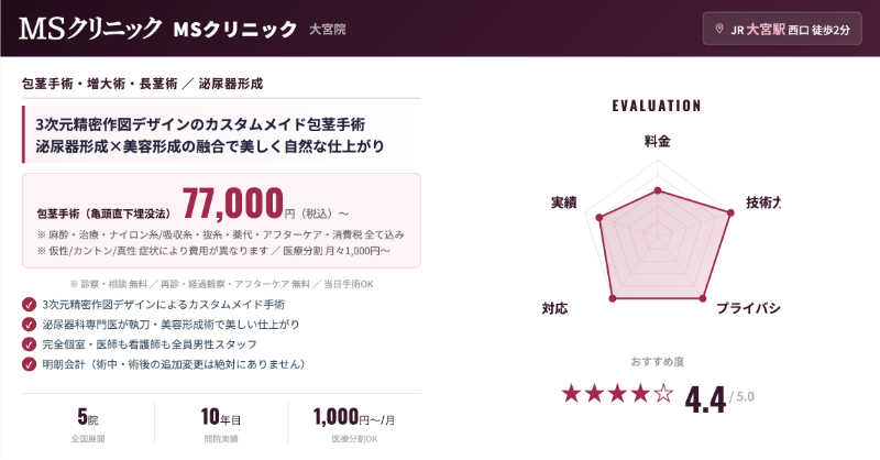 | MSクリニック大宮 | 包茎・長茎・増大術など男性器形成を中心に多数症例 |