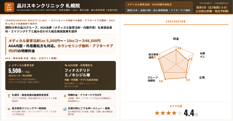 | さっぽろ美容クリニック | 札幌駅徒歩1分の通いやすさと、FAGAを含む幅広い美容医療メニュー |