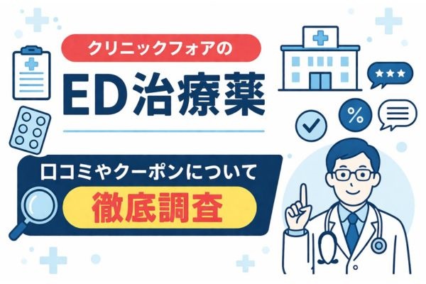 本記事では、クリニックフォアのED治療の料金や処方薬の種類、自宅受け取りできる便利さといったメリットだけでなく、対面診療が少ないことによるデメリットや注意点も正直にお伝えします。