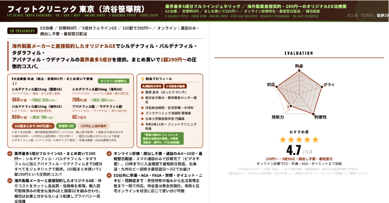 EDはデリケートな悩みなので、「恥ずかしくなかった」「説明が丁寧だった」といった口コミの傾向も重要です。
